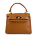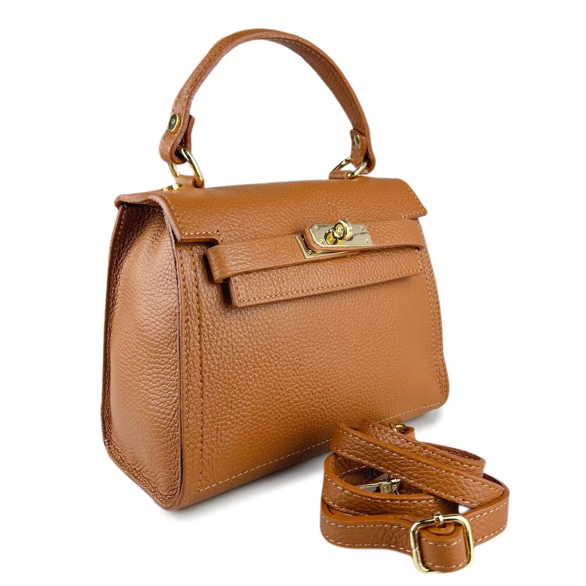 Il suo design strutturato è impreziosito da una chiusura a girello con hardware dorato, dettaglio iconico che dona un tocco di lusso e sicurezza. Il manico singolo in pelle permette di portarla comodamente a mano, mentre la tracolla regolabile e removibile consente di trasformarla facilmente in una pratica borsa a spalla o crossbody.