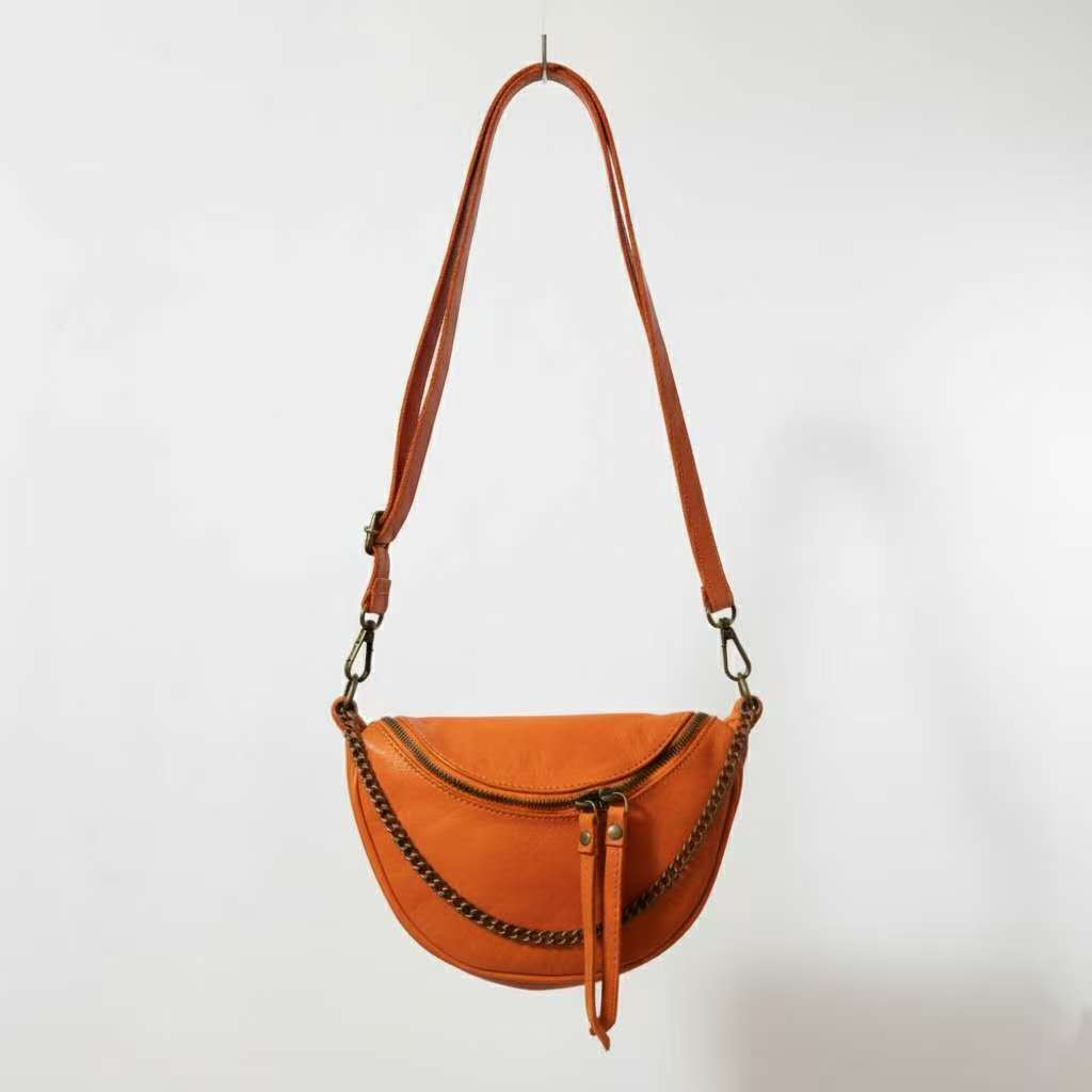 Questa borsa a mezzaluna rappresenta l'eccellenza del Made in Italy, combinando la praticità di un marsupio con l'eleganza di una borsetta a spalla. La particolare lavorazione in pelle lavata conferisce al prodotto una morbidezza eccezionale e un fascino vissuto che non passa mai di moda.
