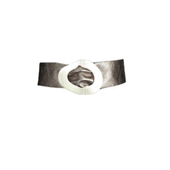 Scopri la perfezione della nostra Cintura in Pelle Laminata! Realizzata con la più pregiata pelle metallizzata e arricchita da una fibbia ovale dorata, questa cintura incarna l'eleganza senza tempo.