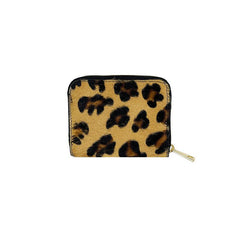Elegante portafoglio compatto in cavallino dal design maculato, realizzato artigianalmente in Italia.