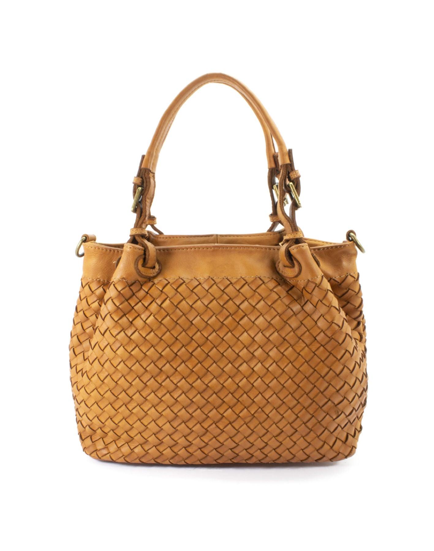 La borsa presenta un design classico con doppio manico regolabile, offrendo flessibilità e comfort durante il trasporto. La pelle intrecciata su entrambi i lati aggiunge un tocco di eleganza e originalità, conferendo alla borsa un aspetto distintivo e raffinato.