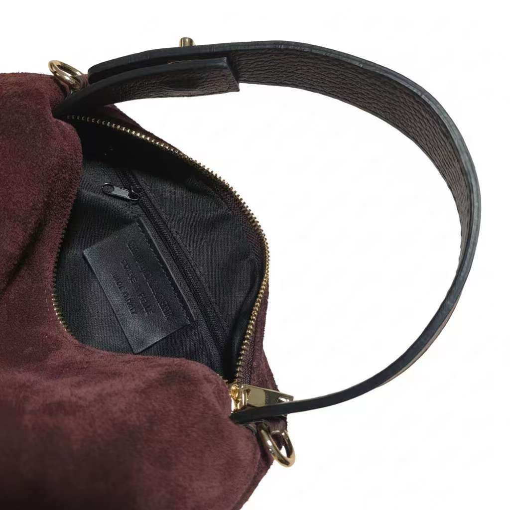 Perfetta per un outfit casual o per una serata elegante, questa borsa in camoscio con dettagli in pelle è la scelta ideale per chi ama distinguersi senza rinunciare alla comodità.